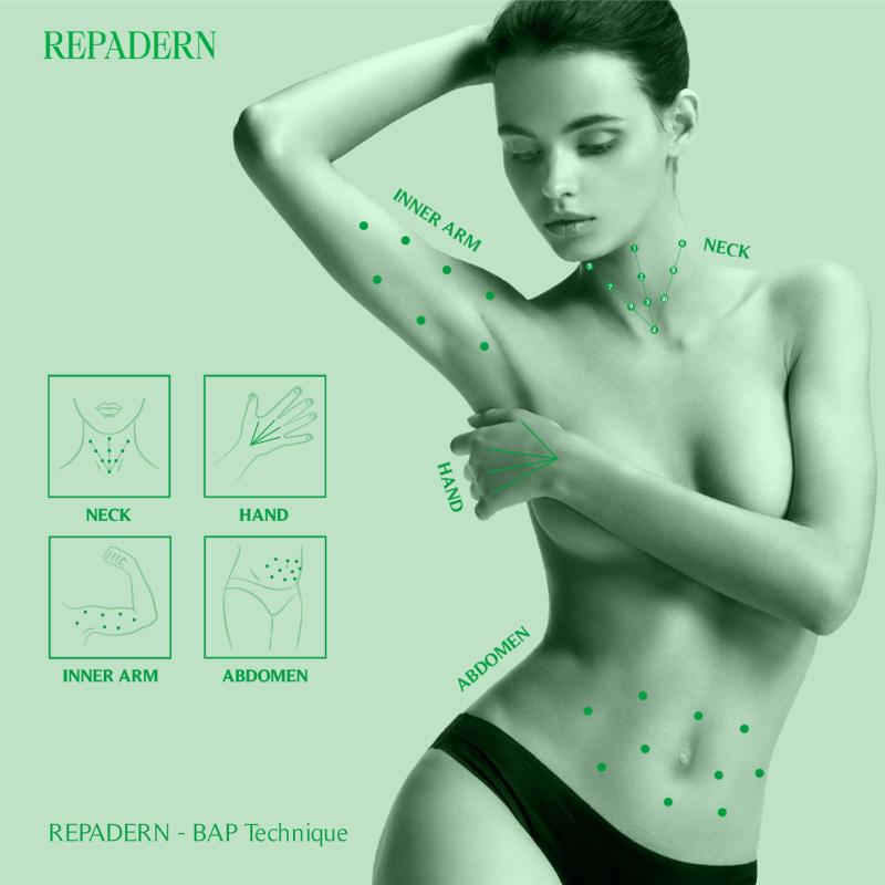REPADERN, yüz anatomisine uygun olarak belirlenen BAP (Bio Aesthetic Points) tekniği ile uygulanır.